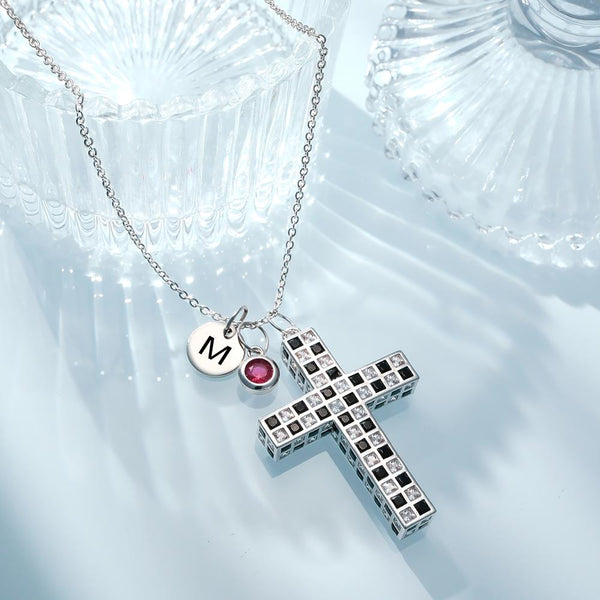 Custom Birthstone Letter Necklace Checkered Flag Cross Unique Gifts