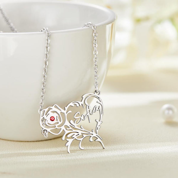 Custom Name Birthstone Necklace Rose Heart Shape Exquisite Gifts