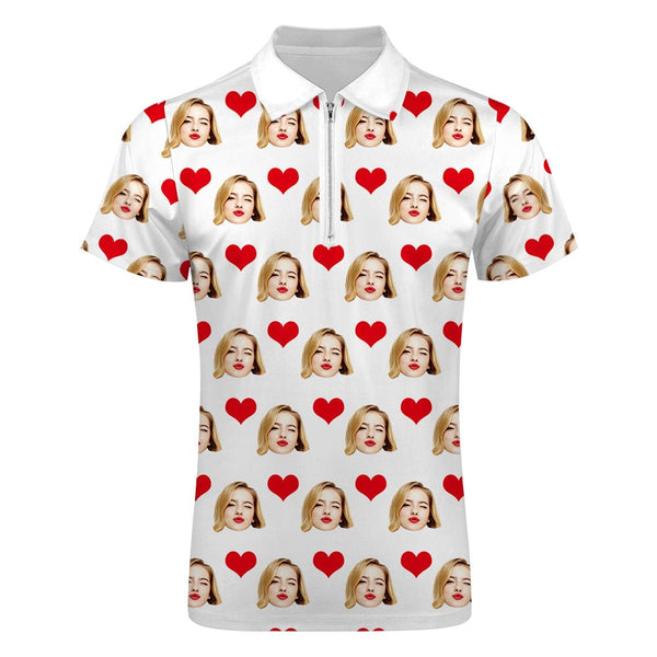 Custom Face Polo Shirt with Zipper Men's Polo Shirt for Boyfriend or Husband
