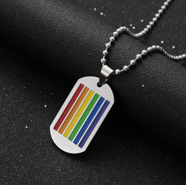 Men's Custom Rainbow Engraved Words Tag Necklace Personalized Necklace Stainless Steel Gift For Queer On Pride's Day