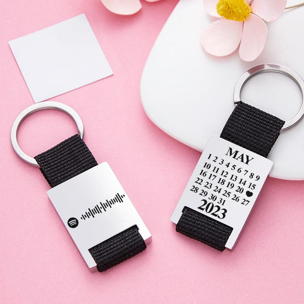 Custom Calendar Keychain with Spotify Code Personalized Gift