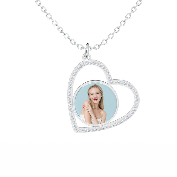 Women's Heart Photo Engraved Tag Necklace with Engraving Stainless Steel