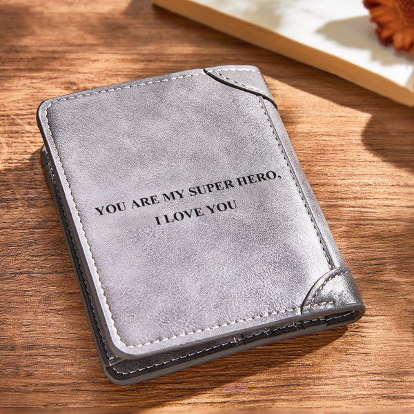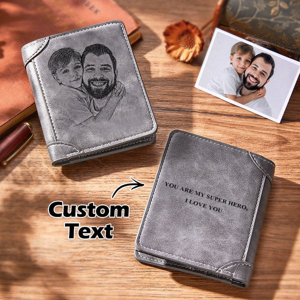 Personalised Photo Leather Bifold Wallets with a Coin Purse & ID Window Pocket Men's Vertical Gray Wallet Father's Day Gift