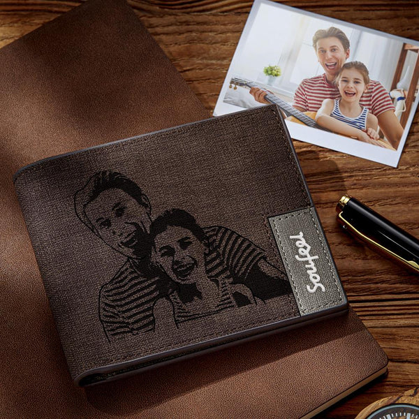 Personalized Photo Leather Men's Short Wallet With Engraving Gift for Men