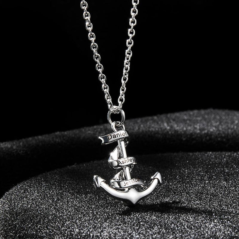 Custom Engraved Name Necklace Anchor Pendant Necklace