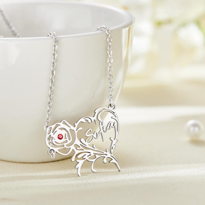 Custom Name Birthstone Necklace Rose Heart Shape Exquisite Gifts