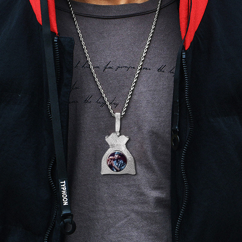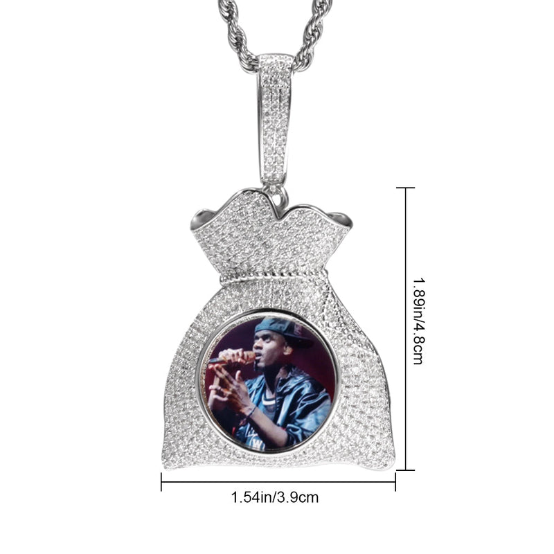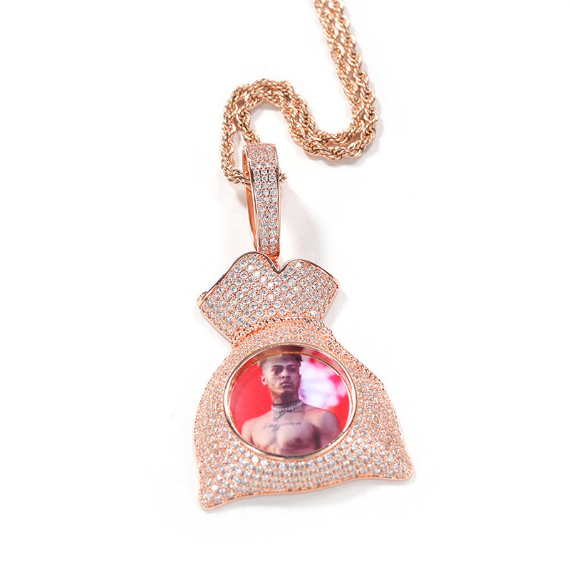 Custom Photo Zircon Necklace Purse Shaped Pendant Necklace Gift for Boyfriend