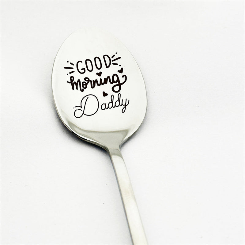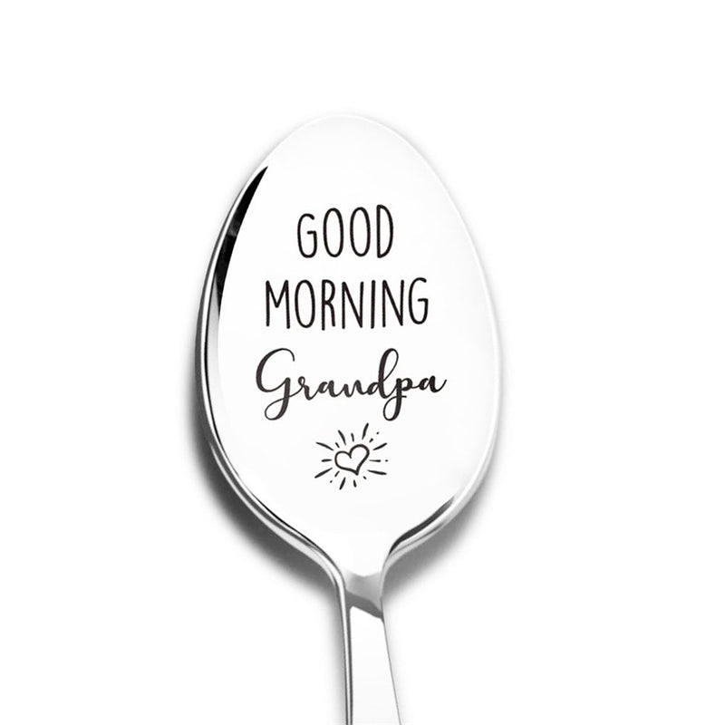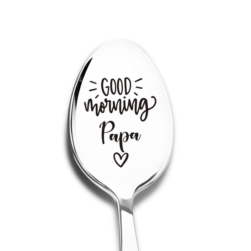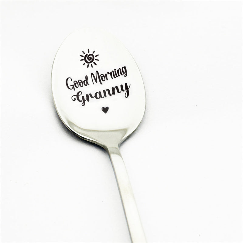 This stainless steel coffee spoon is the perfect gift for beloved Nana, Papa, or Mom. Its unique design features the phrase "Good Morning" to bring a smile every morning. Made of durable stainless steel, it's a practical and thoughtful addition to any coffee lover's collection.