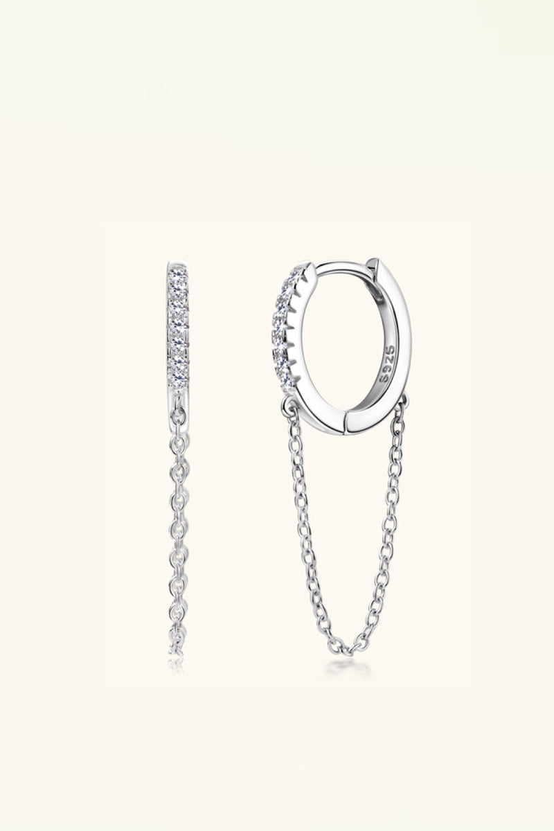 Moissanite 925 Sterling Silver Huggie Earrings with Chain