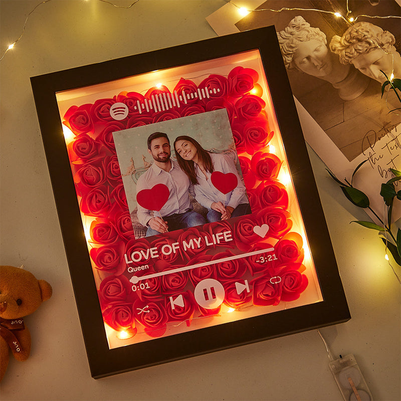 This beautiful night light is the perfect gift for any couple! This is a great way to show your love for the never-fading flowers! In this beautiful frame, perfectly curled blooms make for a timeless decoration! If you are interested, in addition to the photos of your lover, you can also add photos of your mother, grandma/Nana, aunt, etc. on the glass, and choose a song you want to send to them. These night lights look great hanging on the wall, on a dresser or dresser, tabletop, and more!