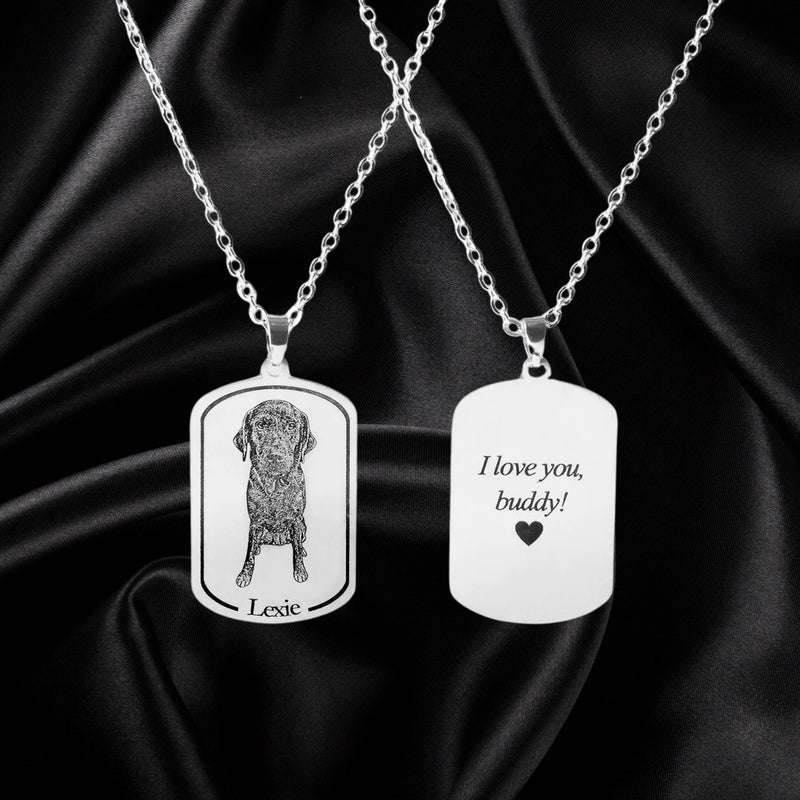 Carve a photo of your pet and let it always be with you in the best moment. Maybe your pet has gone or is getting old, but the love between you will not be forgotten. Your pet will be vividly present on the pendant, with its name or what you want to say on the back.