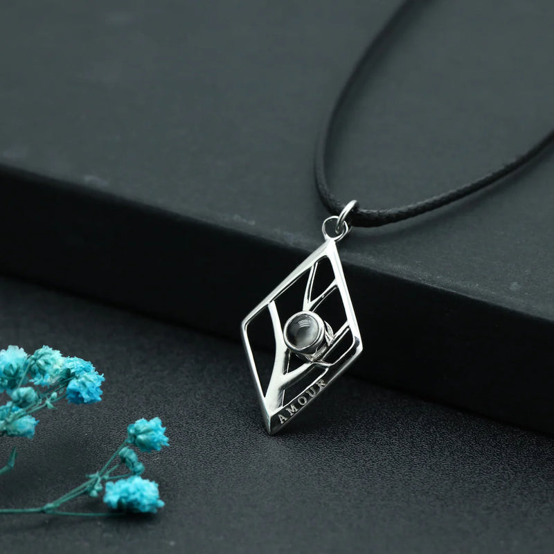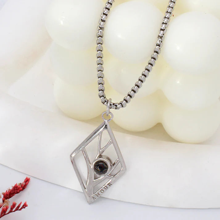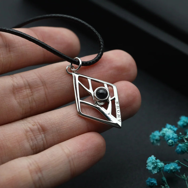 Shine a light through the crystal and the necklace will project a 3D projection of the portrait inside on any surface ✨