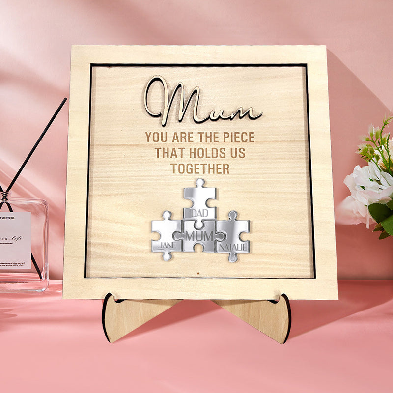 For the romance and pampering of this life, you need to leave a copy of your mother. On the occasion of Mother's Day, send mum a plaque with kids' names puzzle sign. And proudly proclaim "You Are The Piece That Holds Us Together" to mum. This gift touches your mother or wife more than any promise and will make her happy like a child.