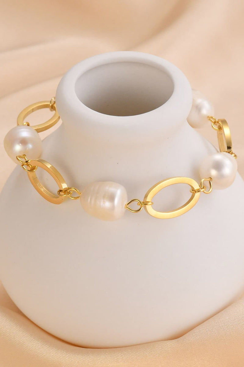 - Material: Stainless steel, 14K gold-plated, Freshwater pearl