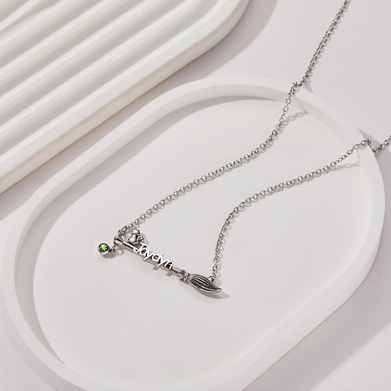 Add more fun to your Halloween holiday with our personalized broom necklace. This necklace has a broom pendant with a cat on it. It will soon bring you into the festive atmosphere of a wonderful and mysterious festival. Customize a broom necklace with your name and birthstone to make it a one-of-a-kind piece of jewelry and add a special touch to your holiday look.