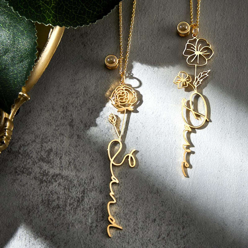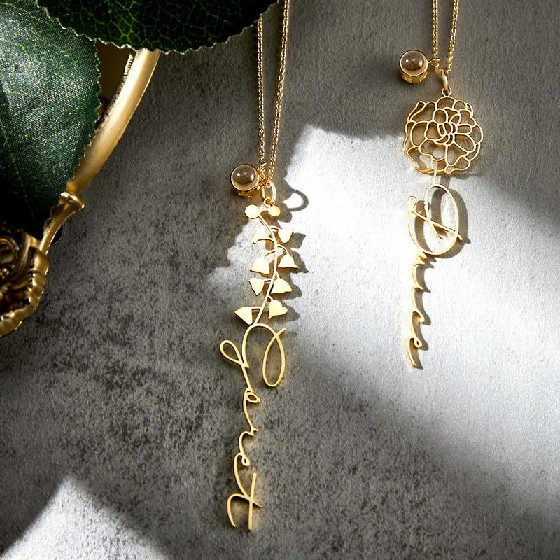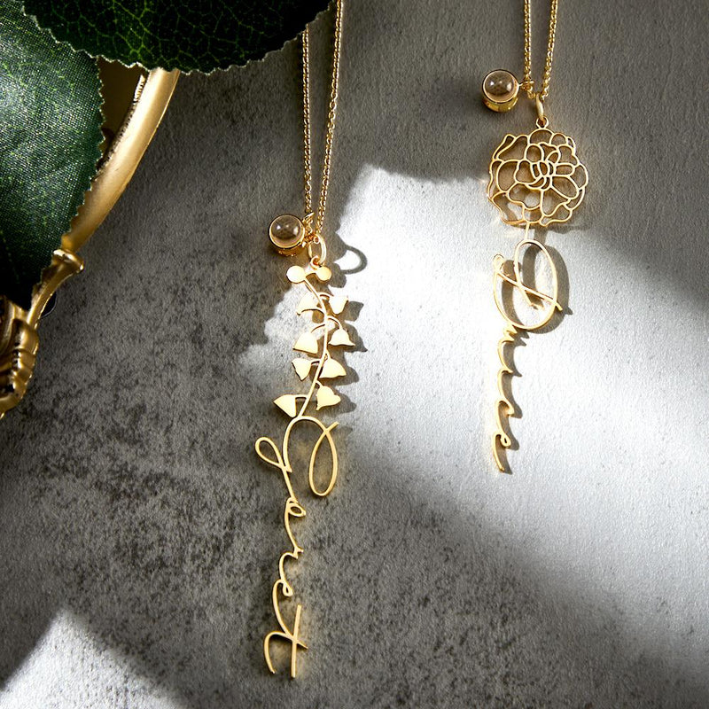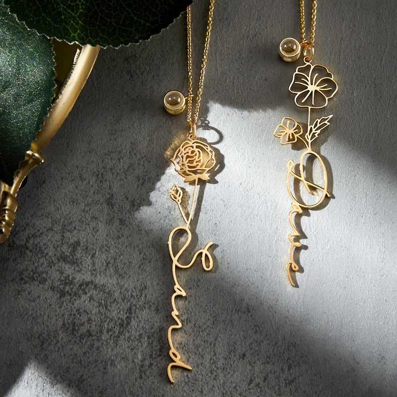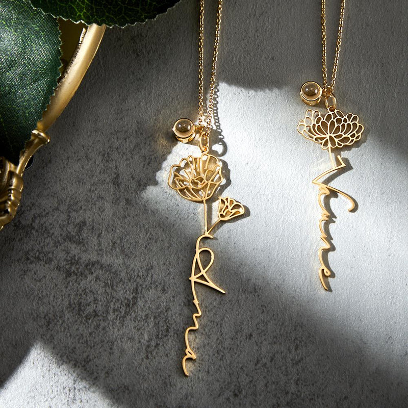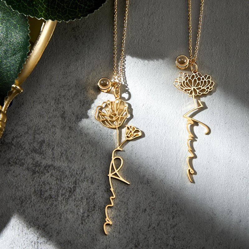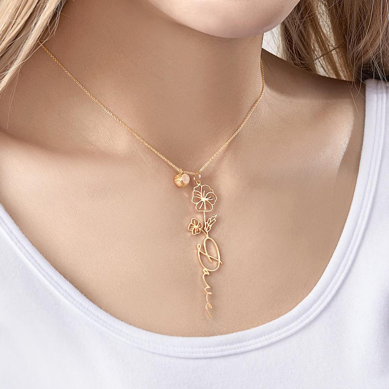 A personalized name necklace is a special gift for your wife, girlfriend, daughter, best friend, or family. Each month has its own flowers, symbolizing health, happiness, and luck. Choose according to the birth month of yourself and the recipient, and customize the birth flower name necklace to bring good luck. Perfect for Birthdays, Graduation, Christmas, Mother's Day, Wedding, anniversaries, parties, and Valentine's Day.