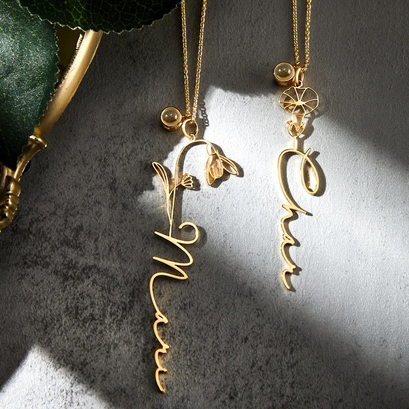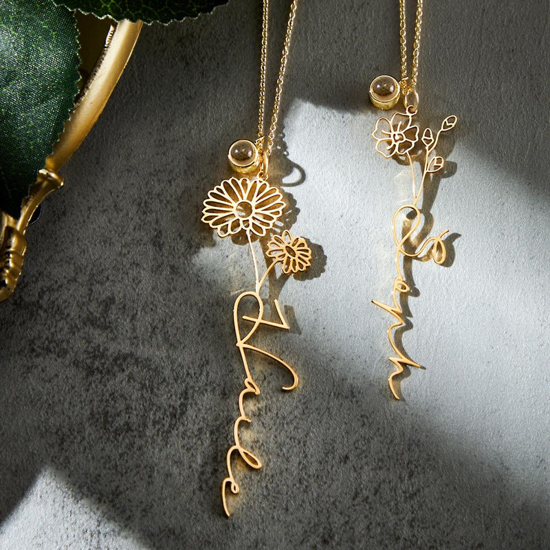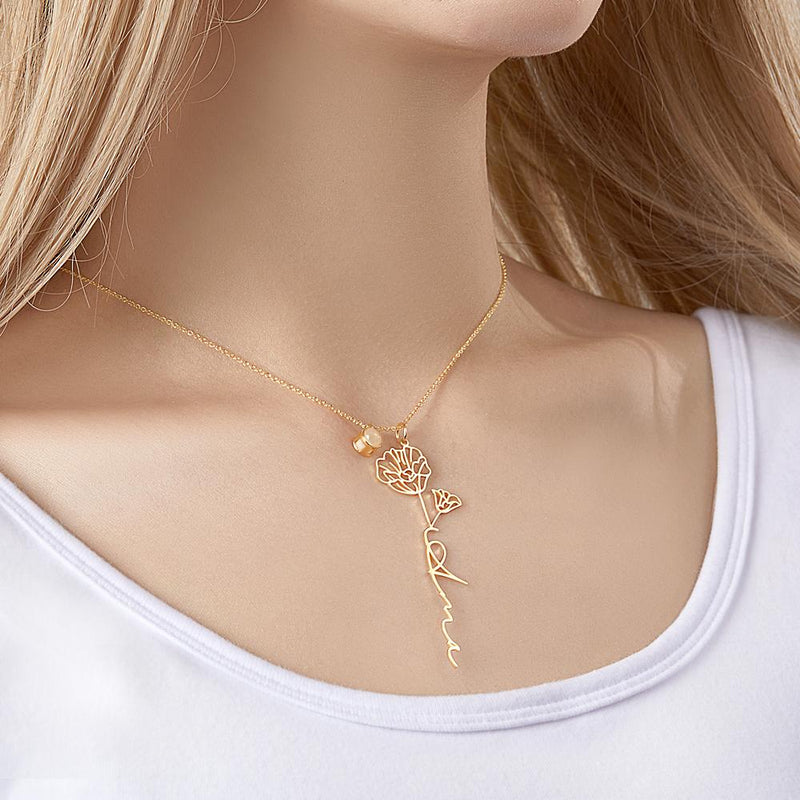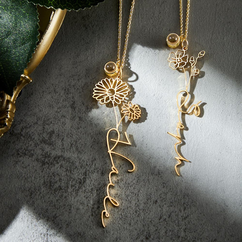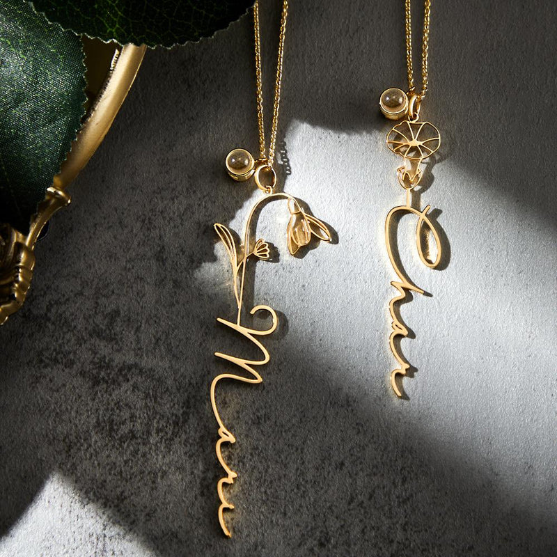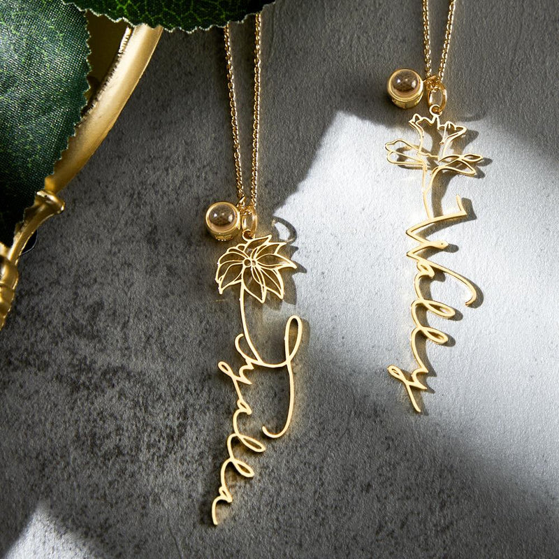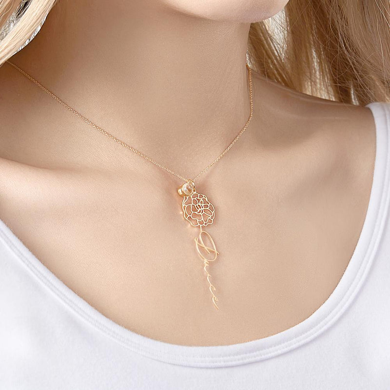 A personalized name necklace is a special gift for your wife, girlfriend, daughter, best friend, or family. Each month has its own flowers, symbolizing health, happiness, and luck. Choose according to the birth month of yourself and the recipient, and customize the birth flower name necklace to bring good luck. Perfect for Birthdays, Graduation, Christmas, Mother's Day, Wedding, anniversaries, parties, and Valentine's Day.
