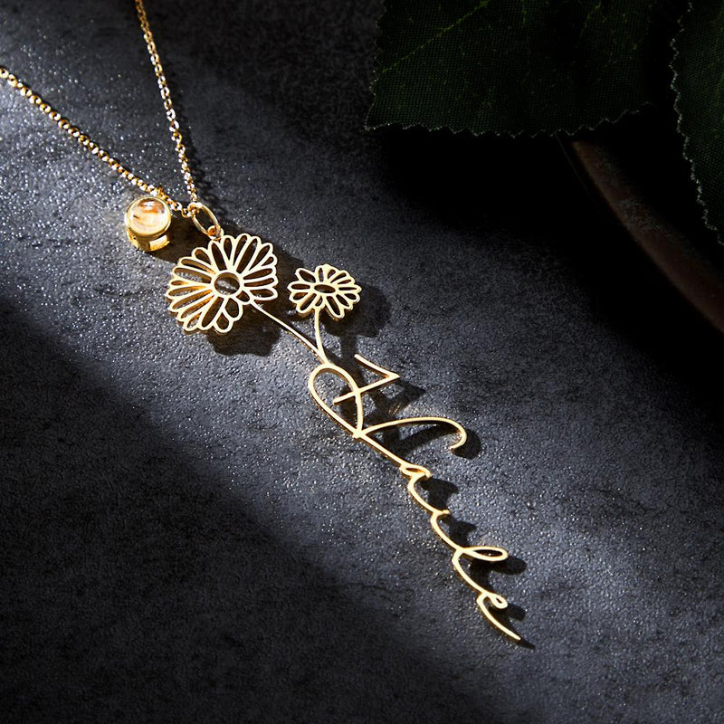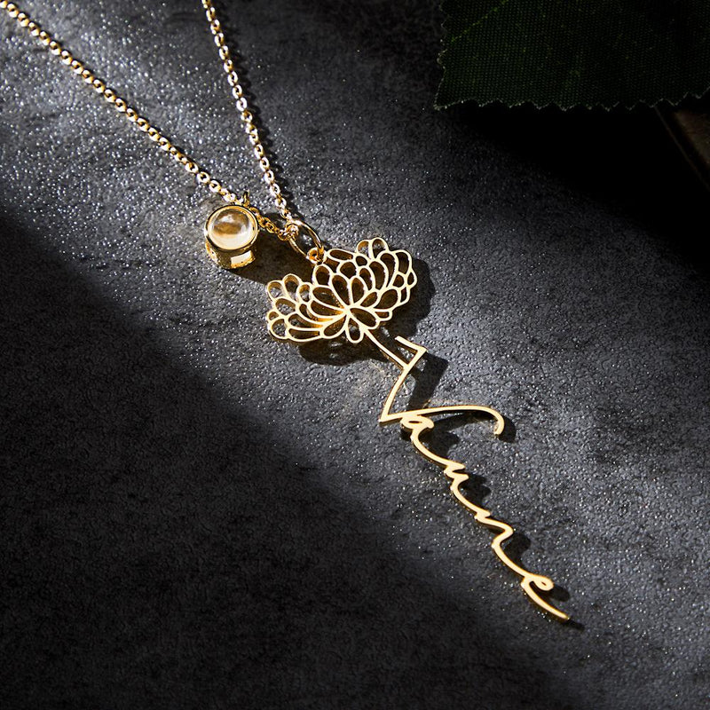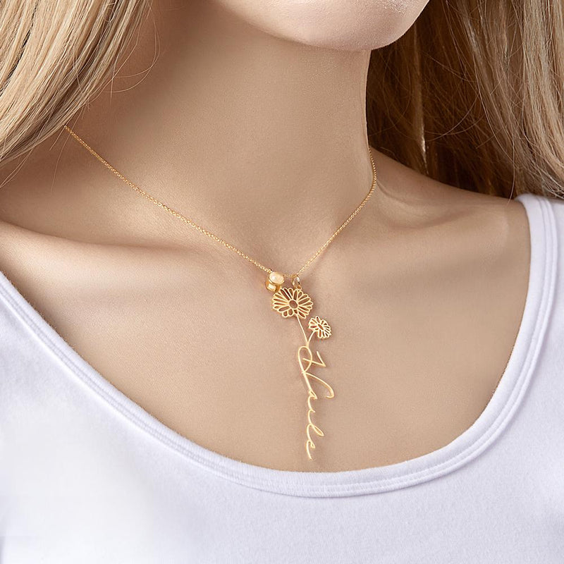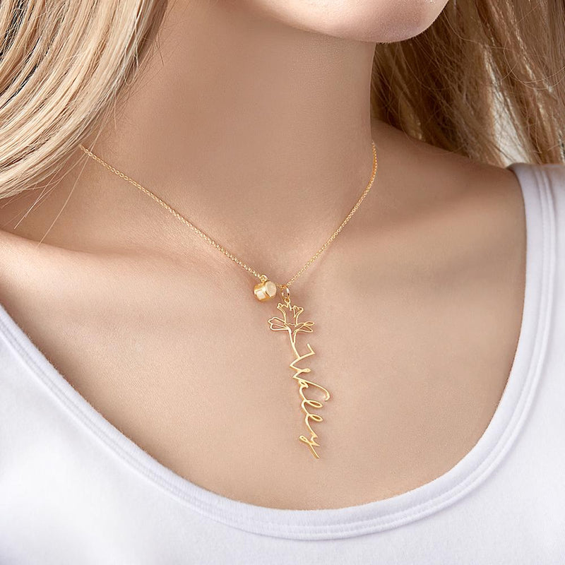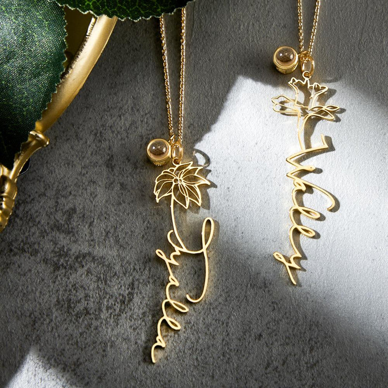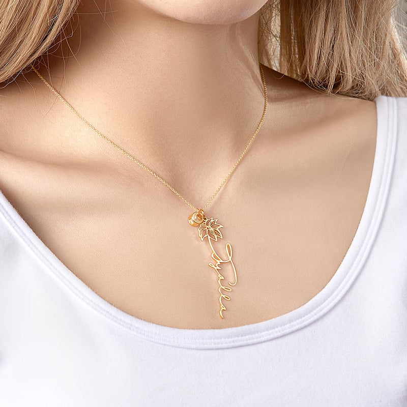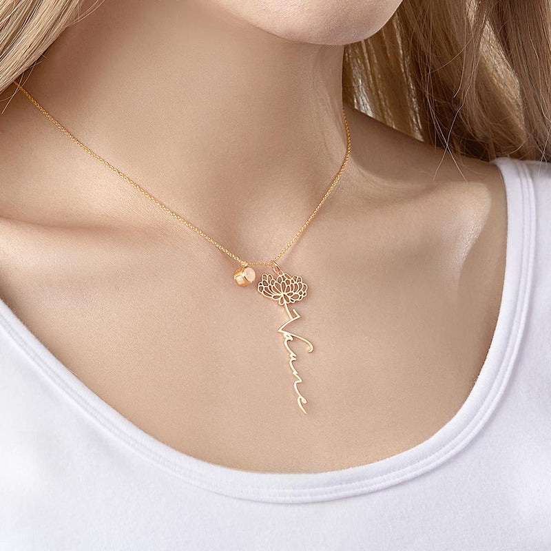 A personalized name necklace is a special gift for your wife, girlfriend, daughter, best friend, or family. Each month has its own flowers, symbolizing health, happiness, and luck. Choose according to the birth month of yourself and the recipient, and customize the birth flower name necklace to bring good luck. Perfect for Birthdays, Graduation, Christmas, Mother's Day, Wedding, anniversaries, parties, and Valentine's Day.