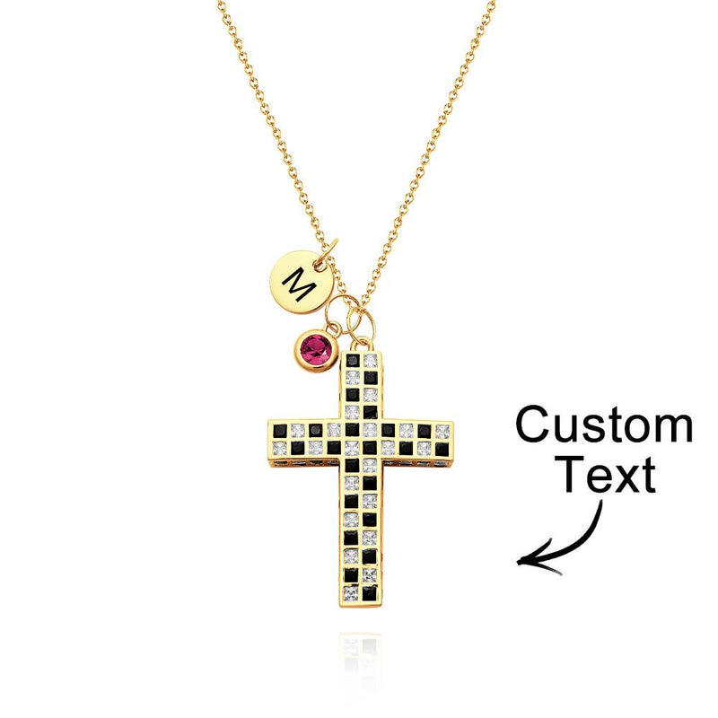 Custom Birthstone Letter Necklace Checkered Flag Cross Unique Gifts