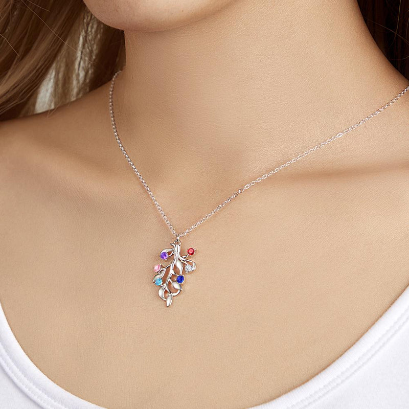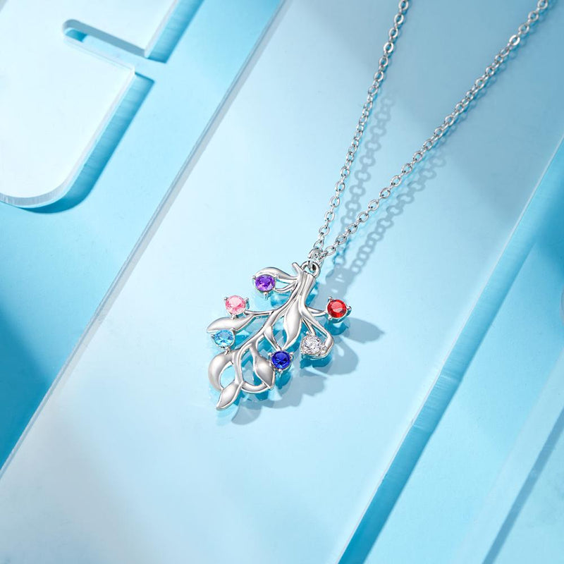 Custom Birthstone Necklace Diamond Tree Commemorate Gifts