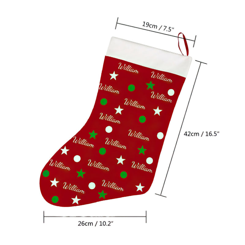Print your text on a real Christmas Stocking. Cheer you up or show your love and support for your loved one with your awesome idea. Look luxurious and noble, cute and fashionable, feel soft and comfortable to touch. Decorate christmas tree, bed, stairs, he fireplace. Let the whole house full of festive atmosphere.