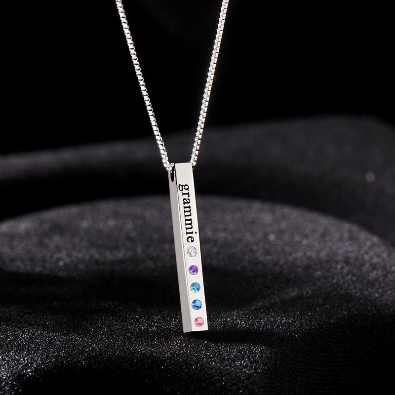 Custom Engraved Birthstone Necklace Bar Simple Gifts