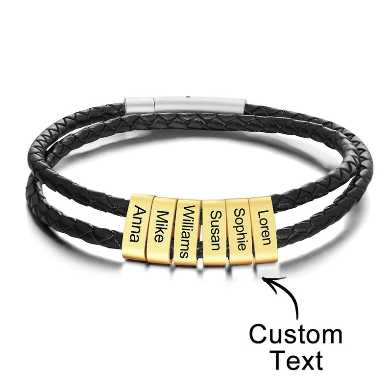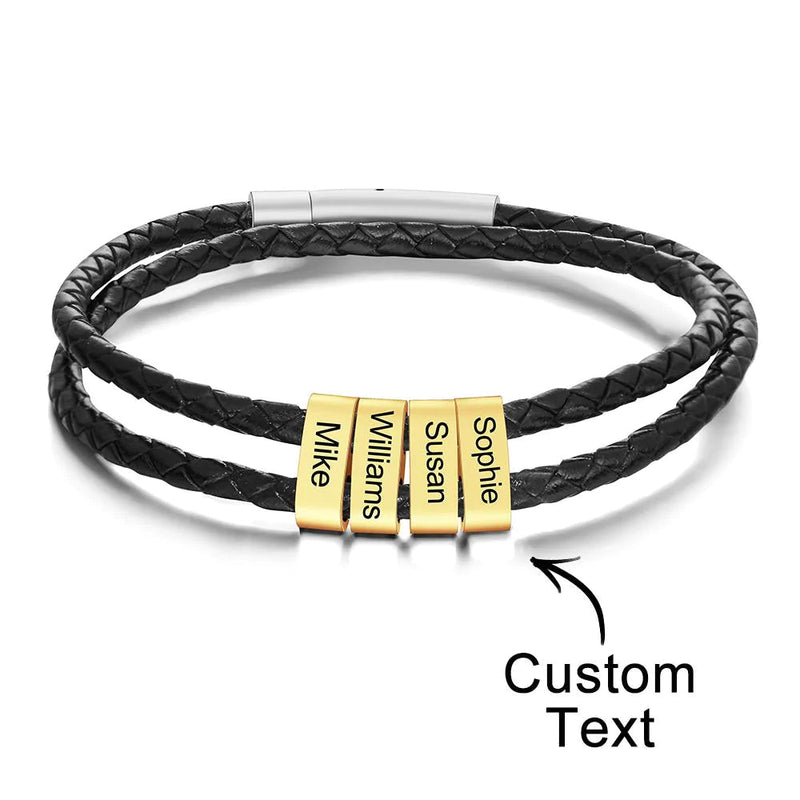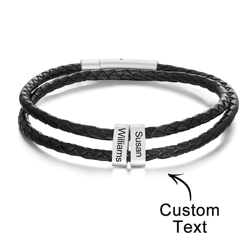 Custom Engraved Bracelet Beads Braided Leather Men's Gifts