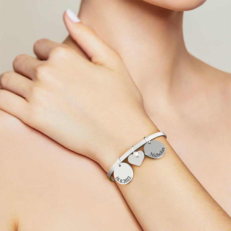 Engravable bracelets are a fun and fashionable way to personalize your look. Not only do these items look sleek and stylish on their own, but they look fantastic after putting charms on. The closures are secure, but for those who want extra peace of mind, there are ones that have safety chains on them as well. Some designs can be personalized with an engraving. It's a very popular gift for mom or wife.