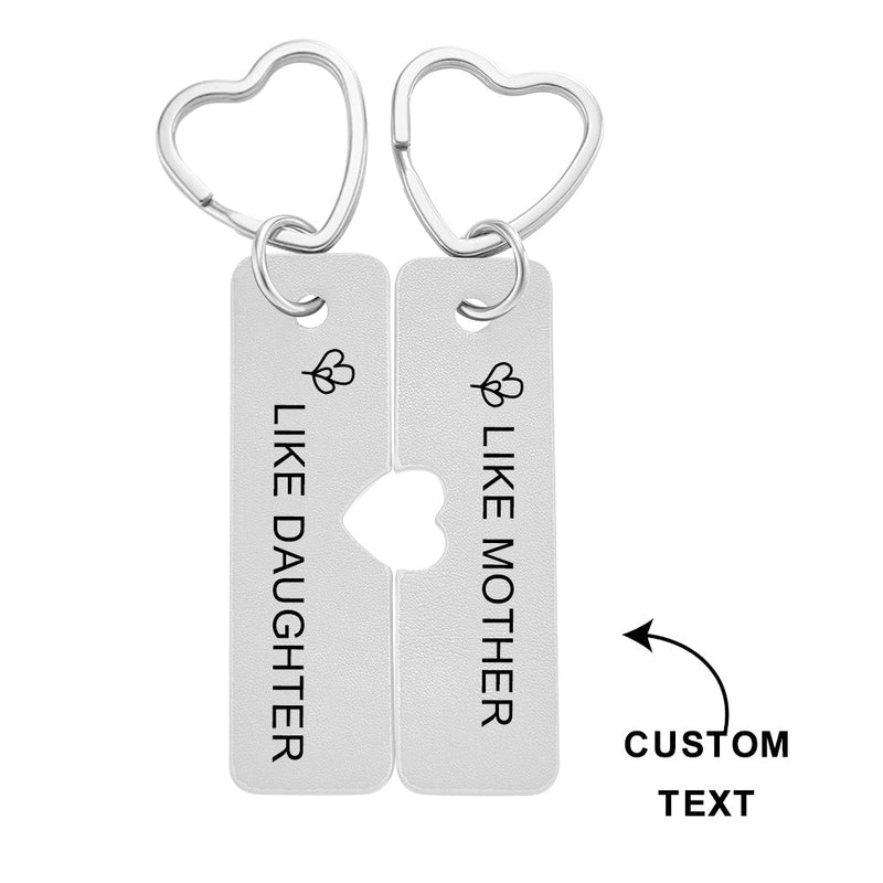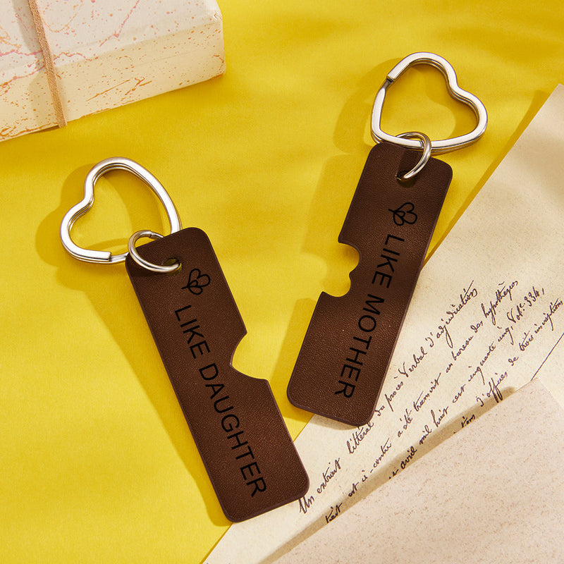 Custom Engraved Keychain Mom & Daughter Leather Keyrings Gift for Her