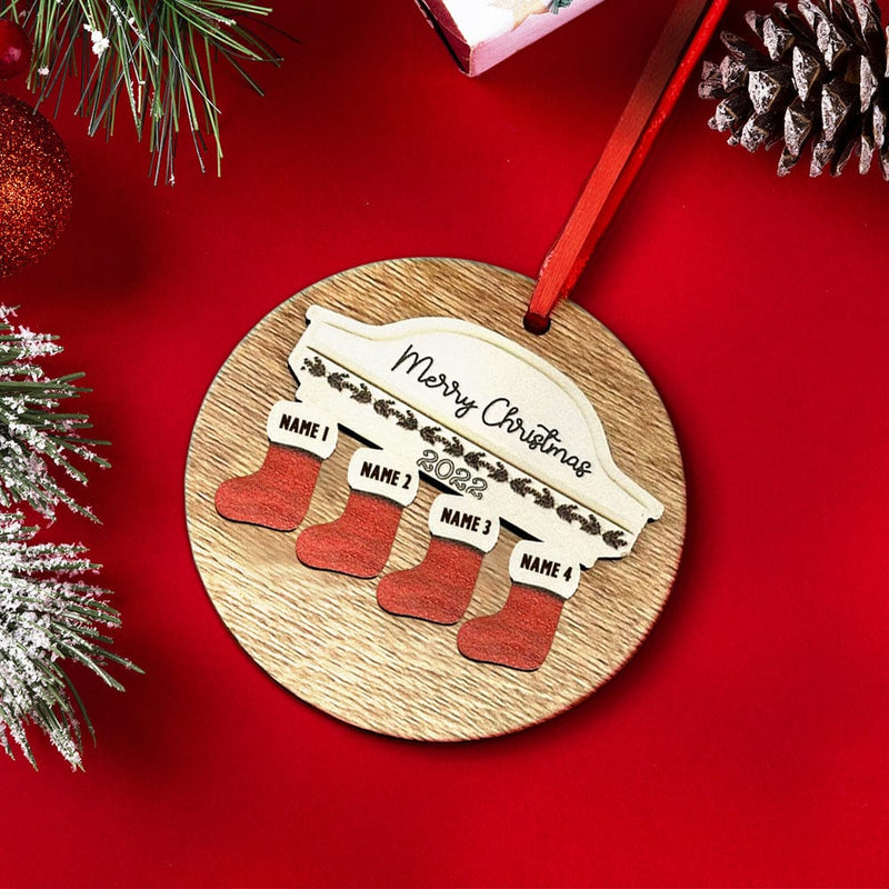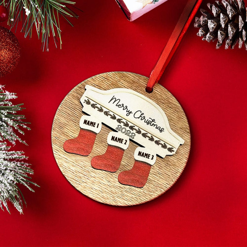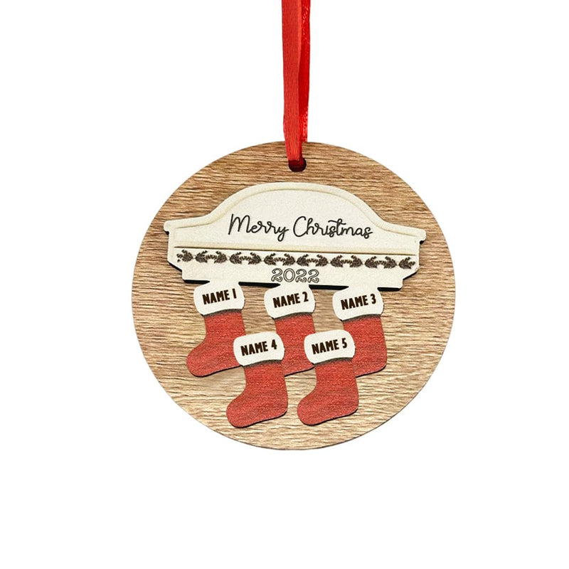 Custom Engraved Name Christmas Ornament Personalized Christmas Socks Wooden Family Ornament Christmas Tree Decoration
