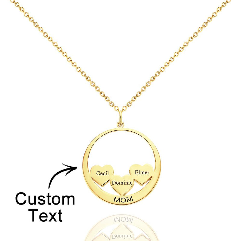 Custom Engraved Necklace Circle Hearts Mom Pendant Necklace Creative Gift