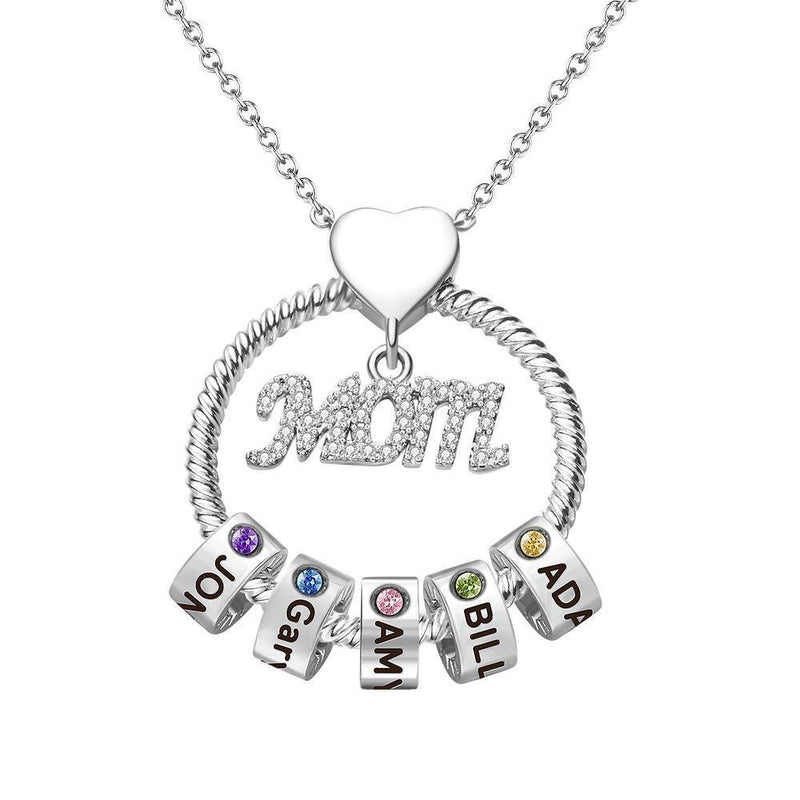 Surprise your mom with this beautiful custom engraved necklace featuring her birthstone. Made of high-quality silver, this personalized piece of jewelry is the perfect gift for any occasion. Show your love and appreciation with this unique and meaningful present that she will cherish forever.