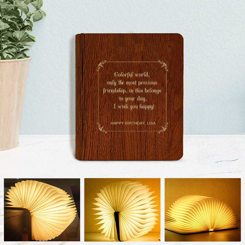 Desk lamp book can be rotated 360 degrees book lamp. Designed with magnets to lock it into place. Both the top and bottom covers are made of strong magnets that shape the book into circles and semicircles, which can be placed on a table or desk as a reading light, or attached to a refrigerator or magnetic wall as a night light. It can be used as an ambient light, desk lamp, night light, emergency light, etc.