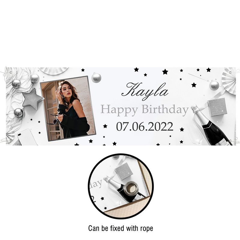 A custom birthday banner is the perfect way to make your loved one's special day even more memorable! Made with high-quality fabric and heat transfer technology, this banner is long-lasting and able to withstand any indoor or outdoor celebration. Personalize it with your text and photo, choosing from a variety of styles to suit the occasion. Add a personal touch to your celebrations with our custom birthday banner.