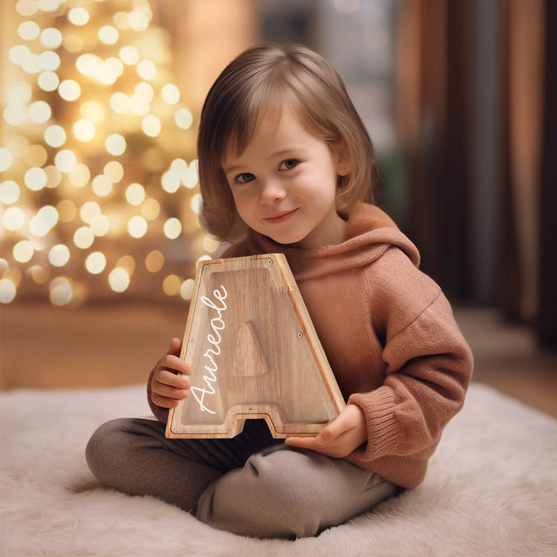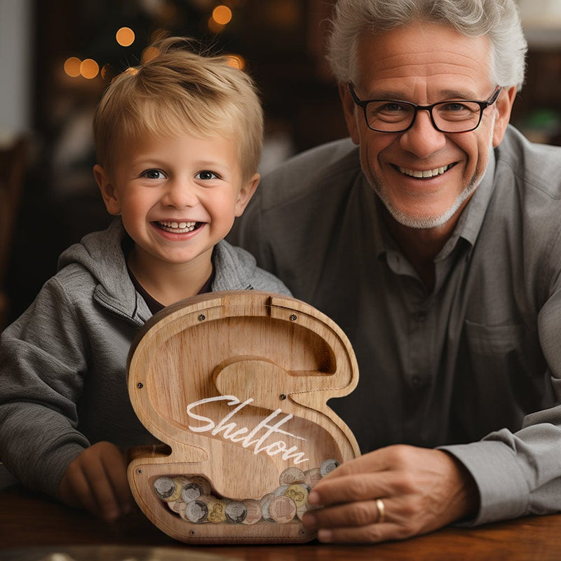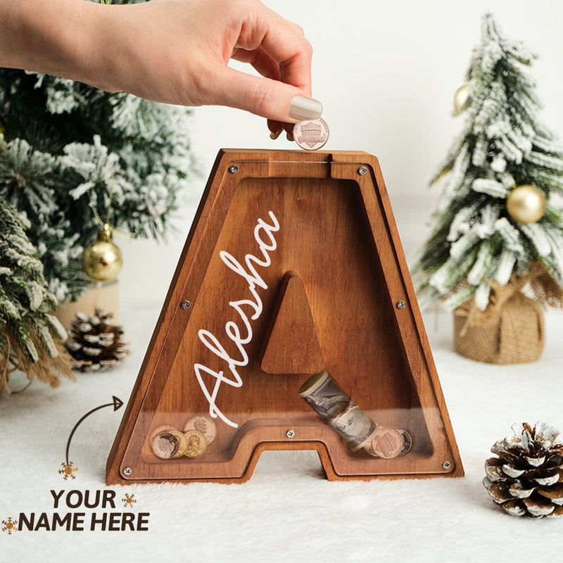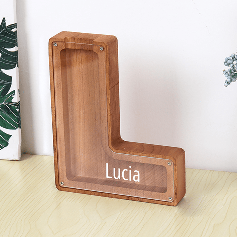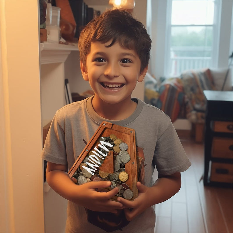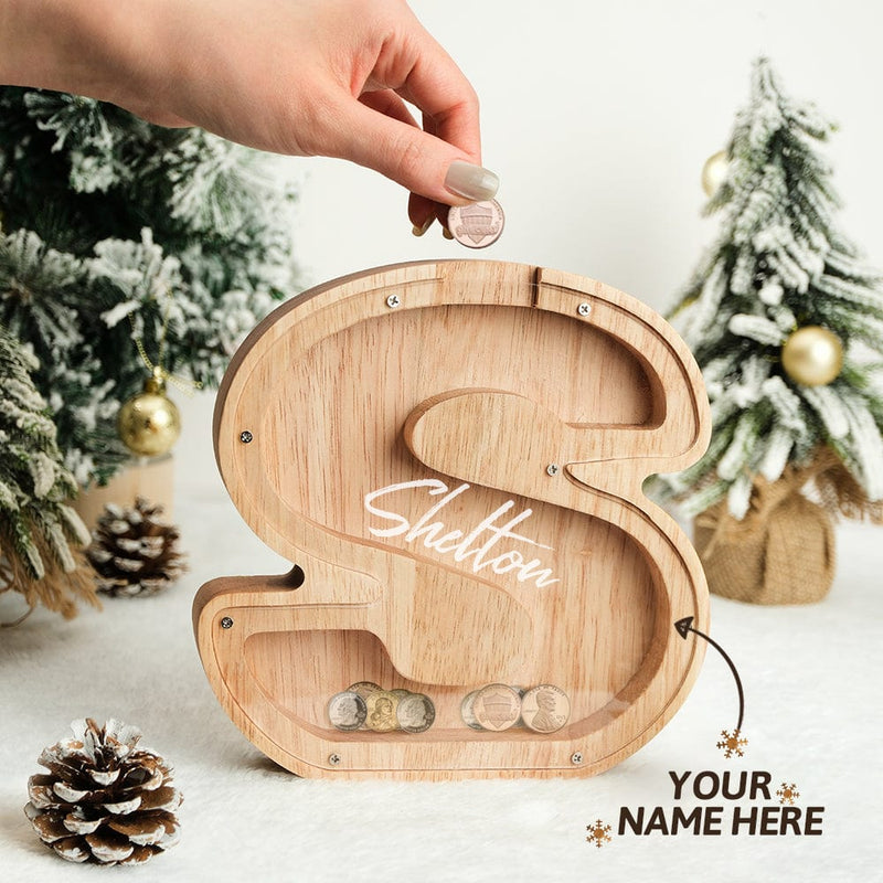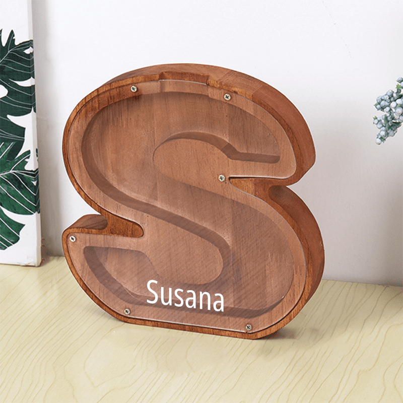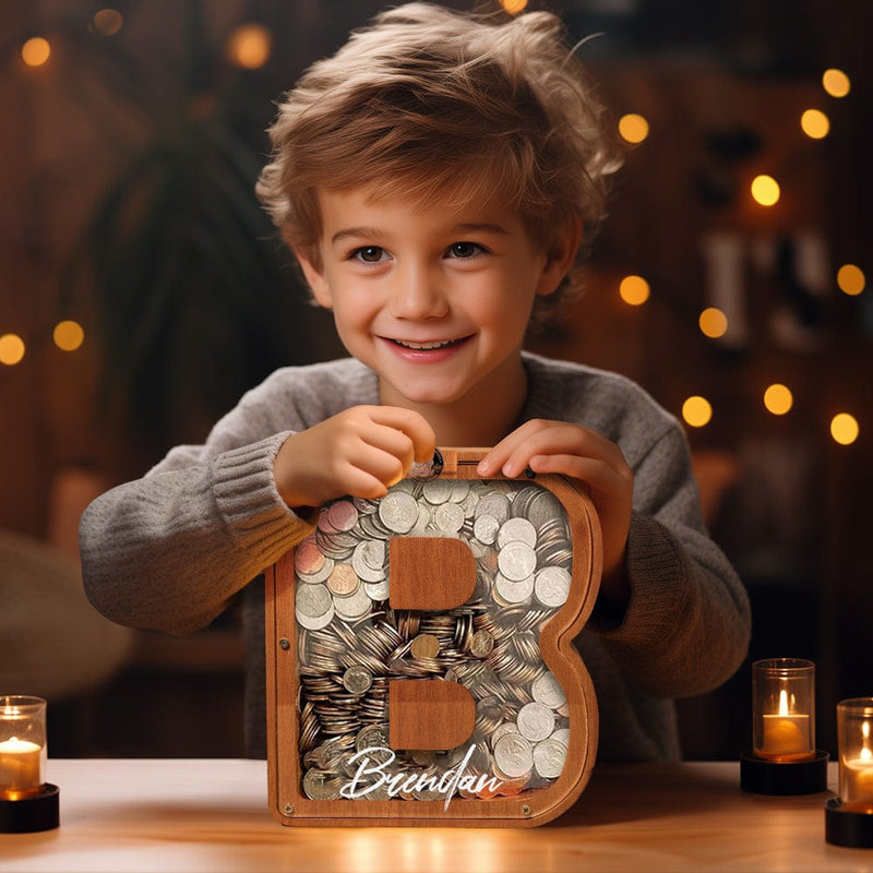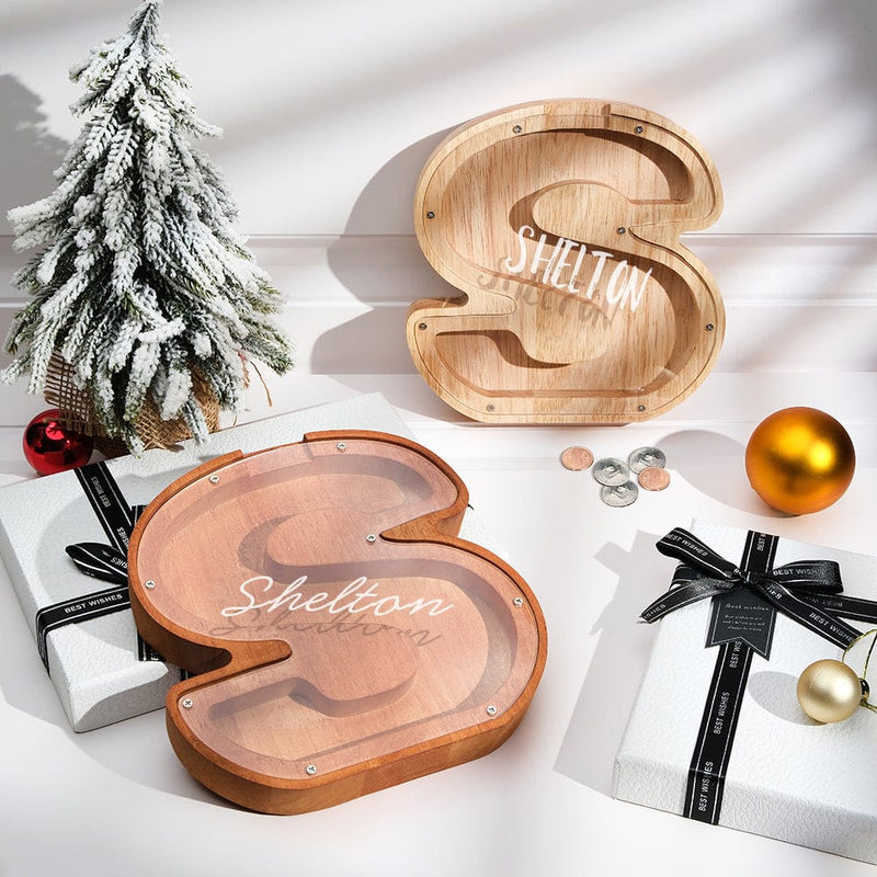 Wooden lettered piggy bank is an ideal choice for the new year, birthday, Christmas, baby shower, holiday for the holidays for sending gifts to kids to help them save money.