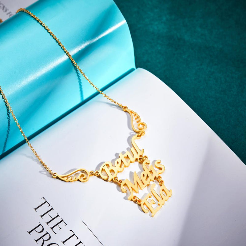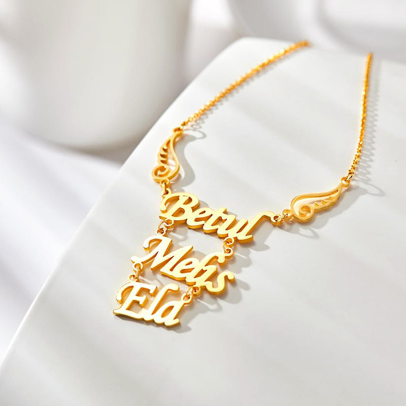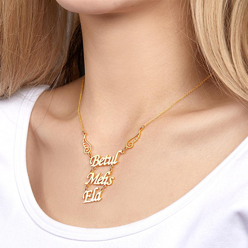 Keywords: Custom necklace, Angel wings pendant, Womens birthday gift, Personalized jewelry, Name necklace, Unique design, Customizable gift, Elegant accessory, Meaningful present, Handcrafted necklace, Personalized pendant, Stylish jewelry