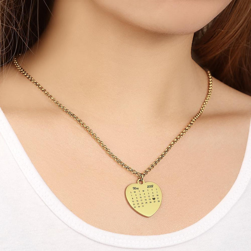Keywords: Custom necklace, Personalized jewelry, Date necklace, Heart pendant, Engraved necklace, Customized gift, Anniversary present, Special occasion jewelry, Unique keepsake, Meaningful accessory