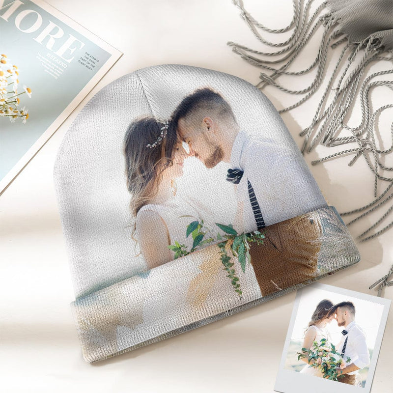 Custom Photo Beanie Hat Warm Soft Knit Hat Winter Cap for Men Women