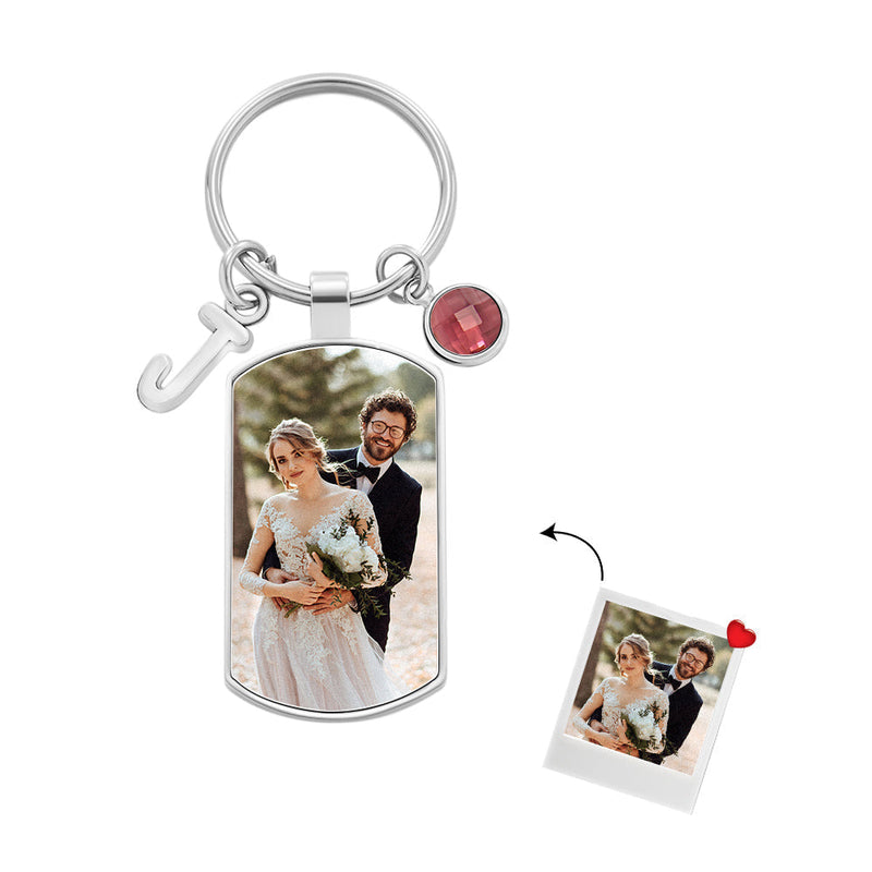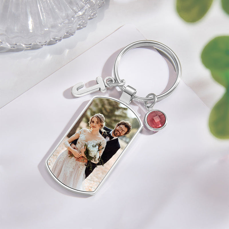 Custom Photo Birthstone Keychain Personalized Letter Pendant Birthday Gifts