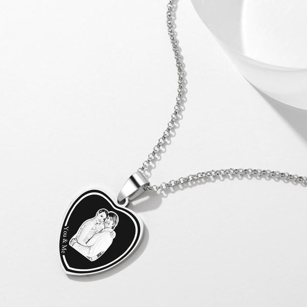 Custom Photo Engraved Necklace Heart Tag Gifts for Couple