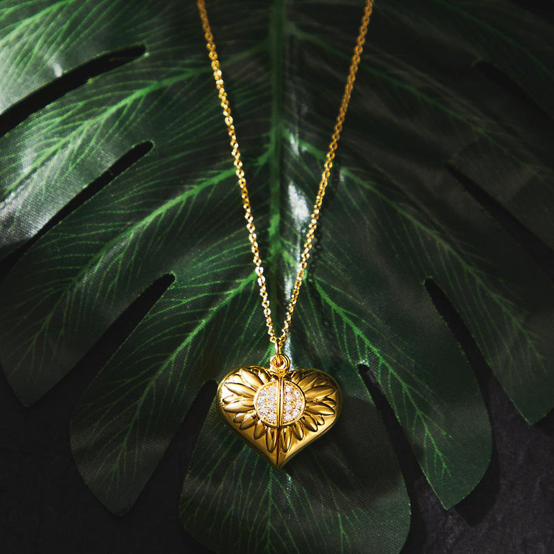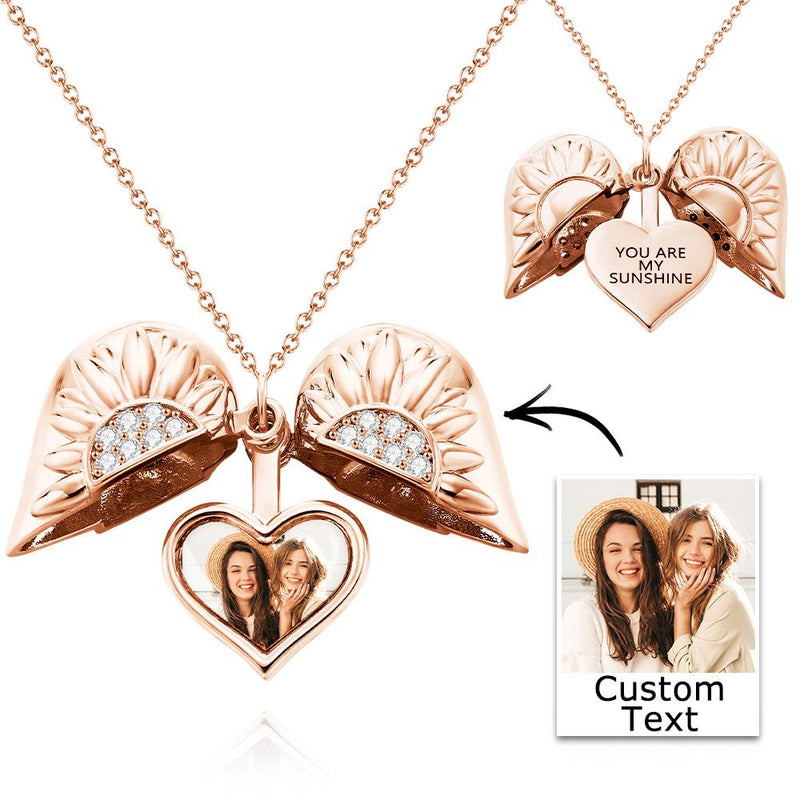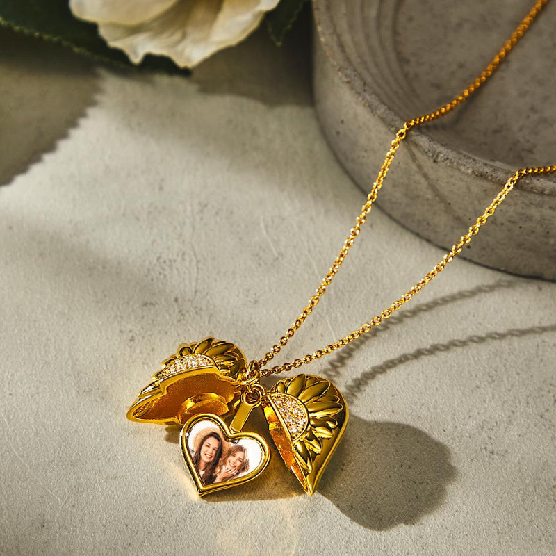 This stunning sunflower heart pendant necklace is the perfect personalized gift for women. Customize it with a special photo that will be beautifully engraved on the pendant. Made with high-quality materials, this necklace is a unique and meaningful piece of jewelry that she will cherish forever. Surprise her with this heartfelt gift on any occasion.Keywords: Engraved necklace, photo pendant, sunflower jewelry, heart necklace, personalized gift, custom necklace, womens jewelry