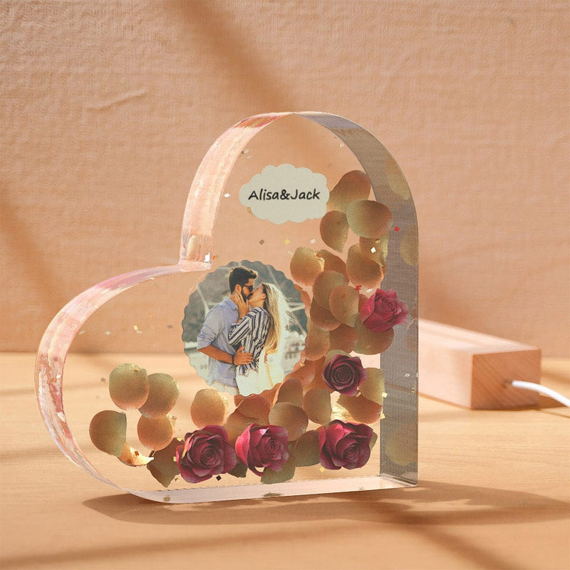 Custom Photo Engraved Night Light Heart Valentine's Day Epoxy Gifts