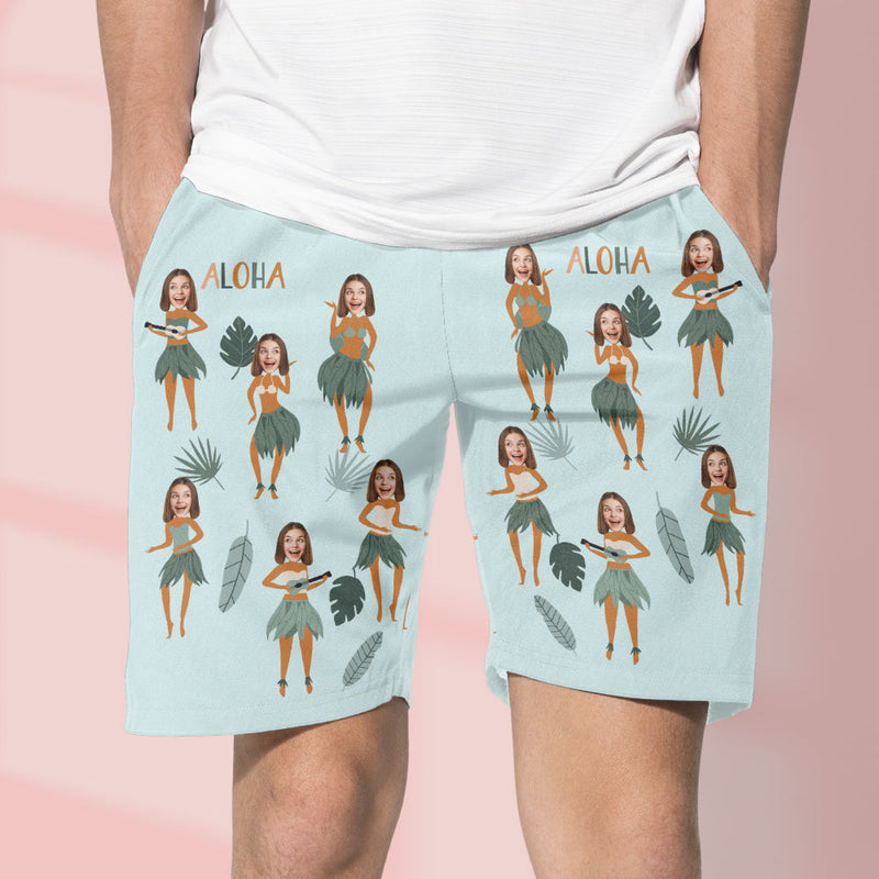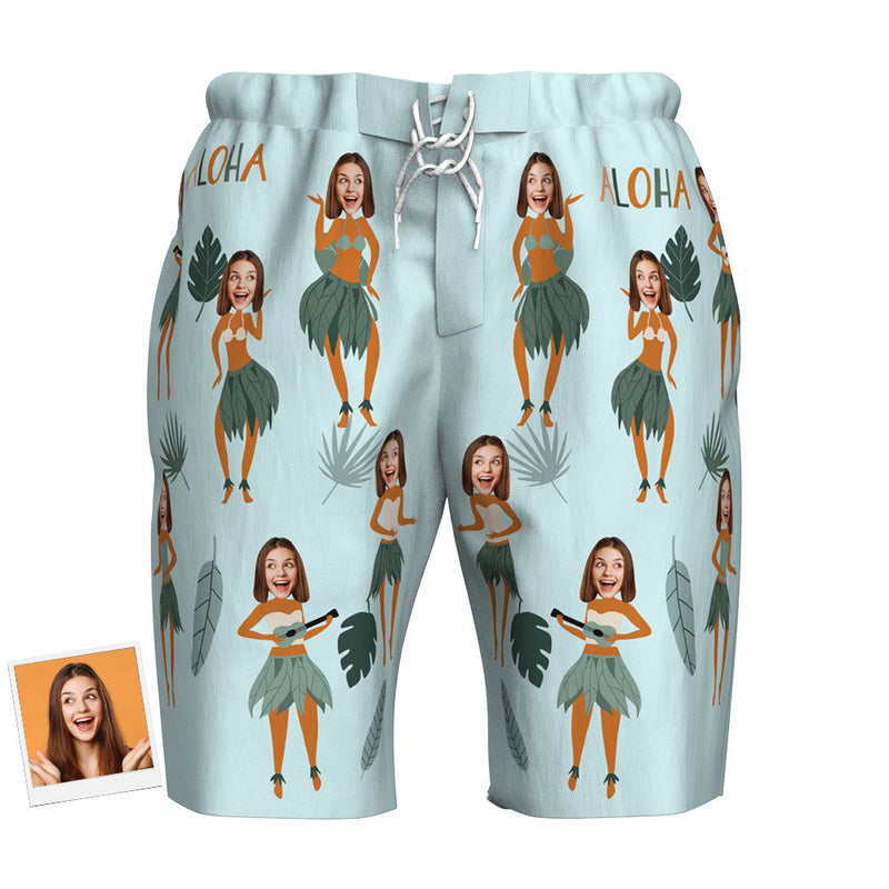 Custom Photo Face Beach Trunk Shorts Funny Summer Gifts