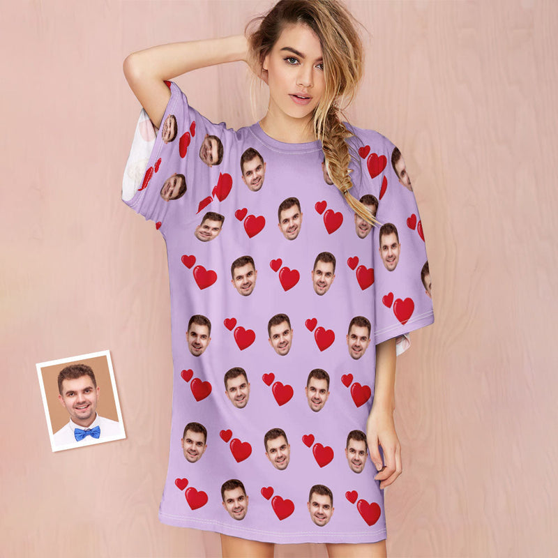 Custom Photo Face Nightdress Personalized Women's Oversized Nightshirt Heart Design Gifts