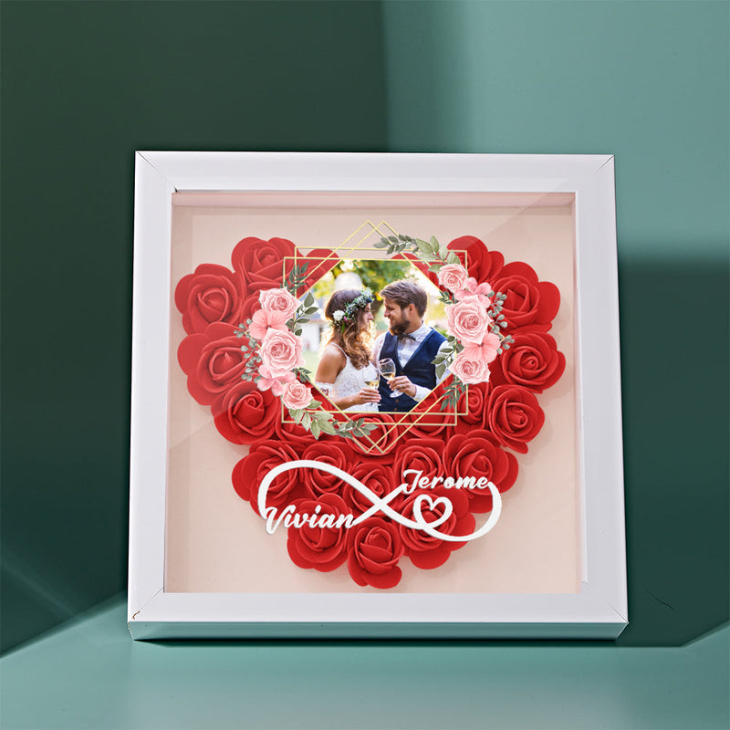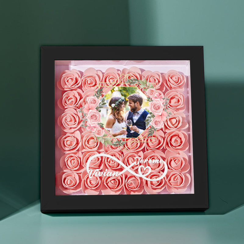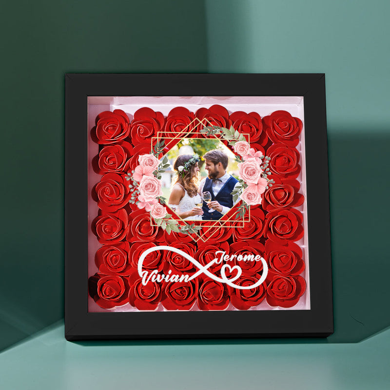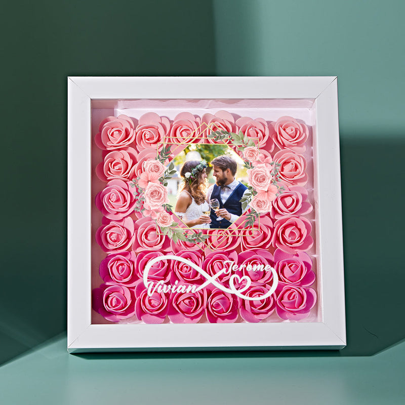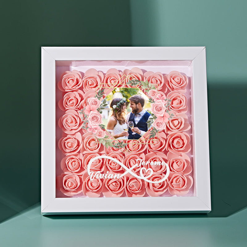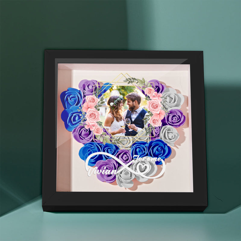 Custom Photo Flower Shadow Box Personalized Infinity Flower Shadowbox Frame Gift for Couple