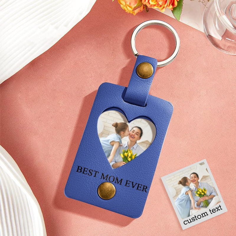 Custom Photo Keychains Heart-shaped Leather Gifts for Mom Best Mom Ever