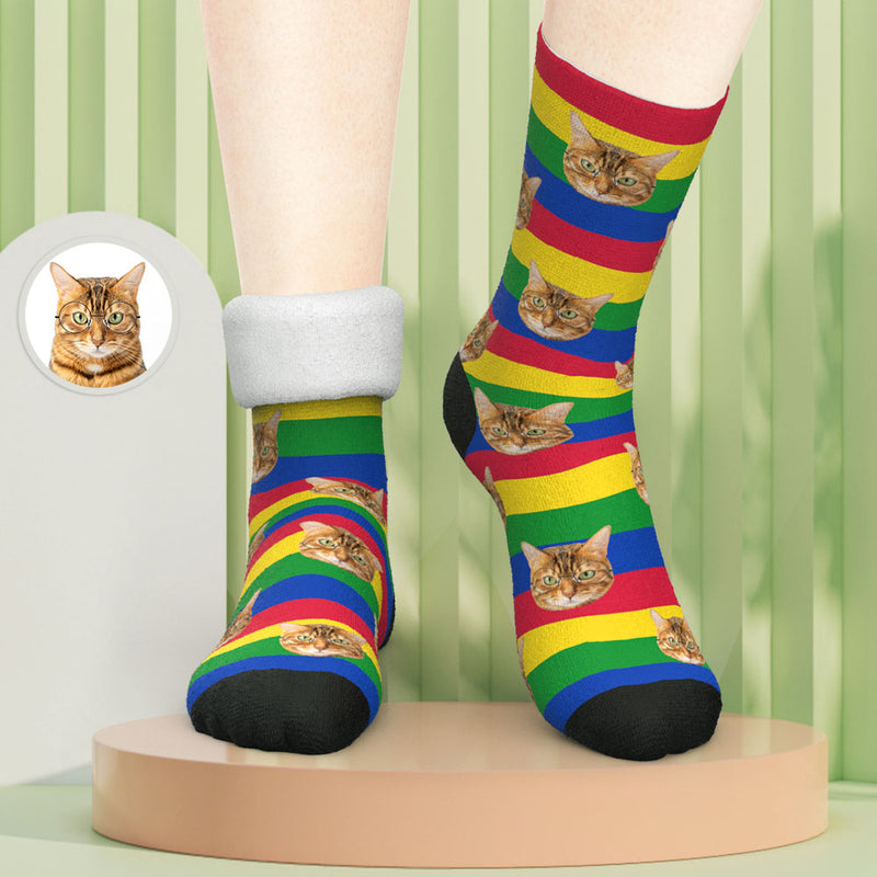 Custom Warm Thick Socks in High Quality for Winter or Cold Days!Custom design:Our design team works hard to get a perfect cutout of your face from your uploaded photo.High Quality:These thick winter socks are made of 95% Polyester, 5% Lycra. It's very comfortable to wear.Very Warm: These wool socks are very warm, they would keep your feet warm in cold winter days.Sock size: Suitable for most people:L(Foot Length 20CM = 7.87in);M(Foot Length 18CM = 7.08in);S(Foot Length 14CM = 5.51in).Best Gifts Ideas:The high quality custom socks are suitable for different situation, you can wear them as winter socks,warm socks,home socks, work socks. Christmas socks in Spring, fall, winter season or in any cold weather or snow areas!
