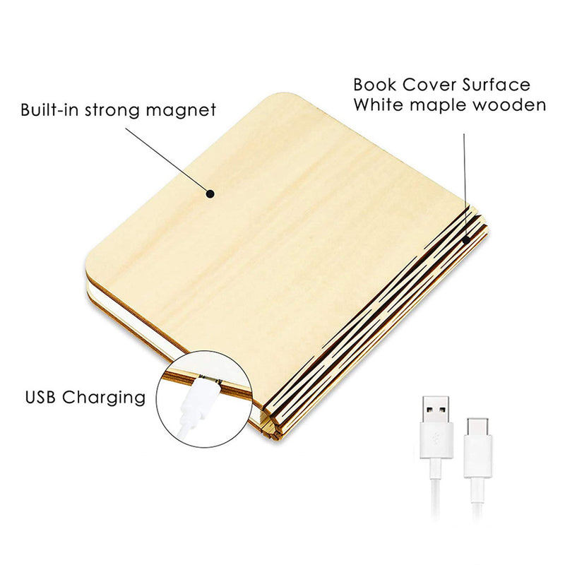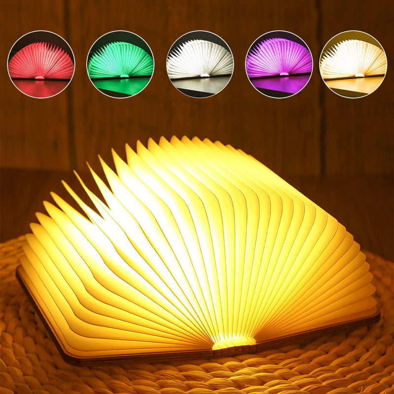 Desk lamp book can be rotated 360 degrees book lamp. Designed with magnets to lock it into place. Both the top and bottom covers are made of strong magnets that shape the book into circles and semicircles, which can be placed on a table or desk as a reading light, or attached to a refrigerator or magnetic wall as a night light. It can be used as an ambient light, desk lamp, night light, emergency light, etc.