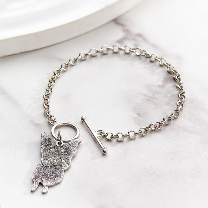A photo engraved bracelet is a perfect gift for a dog lover or a way to keep a memory alive of a pet that passed away. With this custom photo bracelet, you can select your favorite photo of your dog or another pet to engrave on the bracelet.