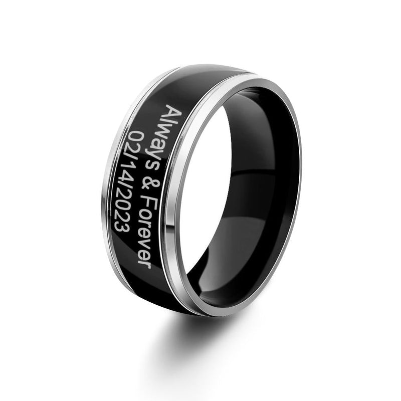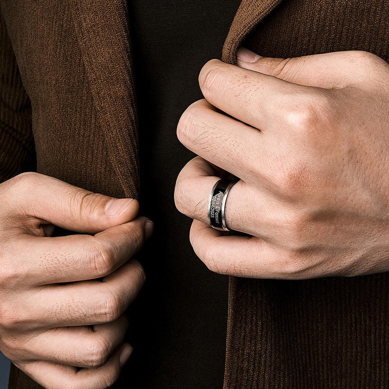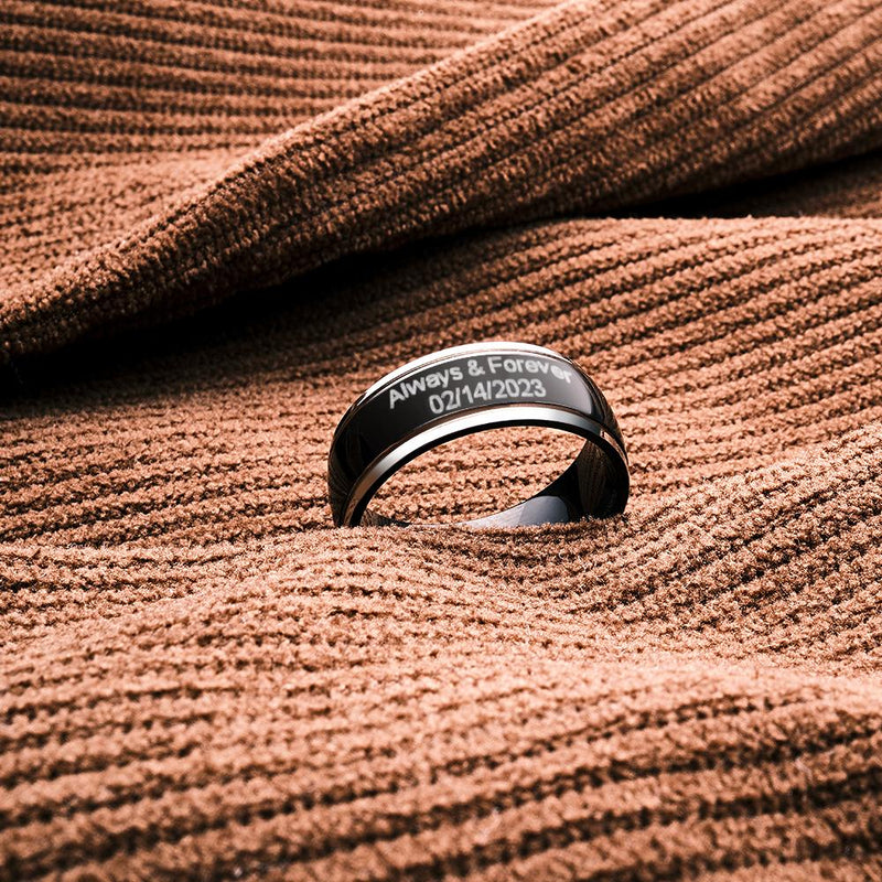This ring can be engraved name, date, letters, coordinate , numbers, Roman numbers,Morse code, symbol etc, up to 30 characters.It's a perfect gift to celebrate your loved one's Birthday. Your messages can be engraved on the outside of the ring.